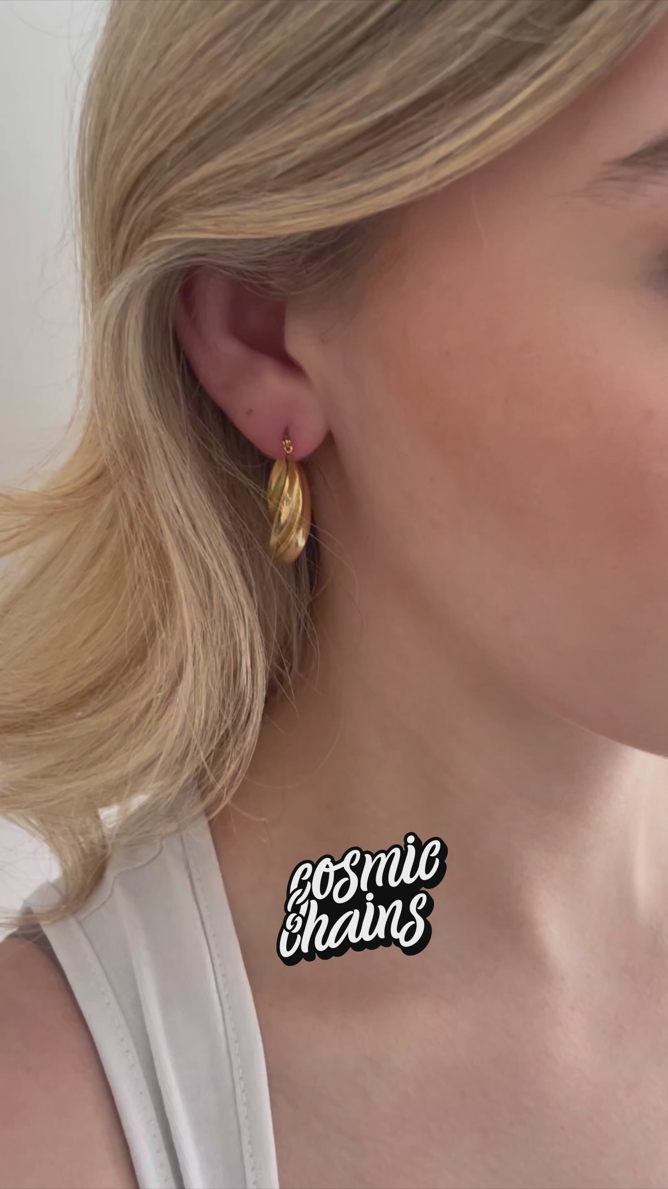 For those who love making a statement, these Big Gold Twisted Hoops offer a bold twist on classic curved hoops. Crafted for grand gestures, these chunky gold hoop earrings blend timeless elegance with a striking presence. Perfect for any occasion, they are the ideal accessory to add a touch of glamour to your day-to-night look.