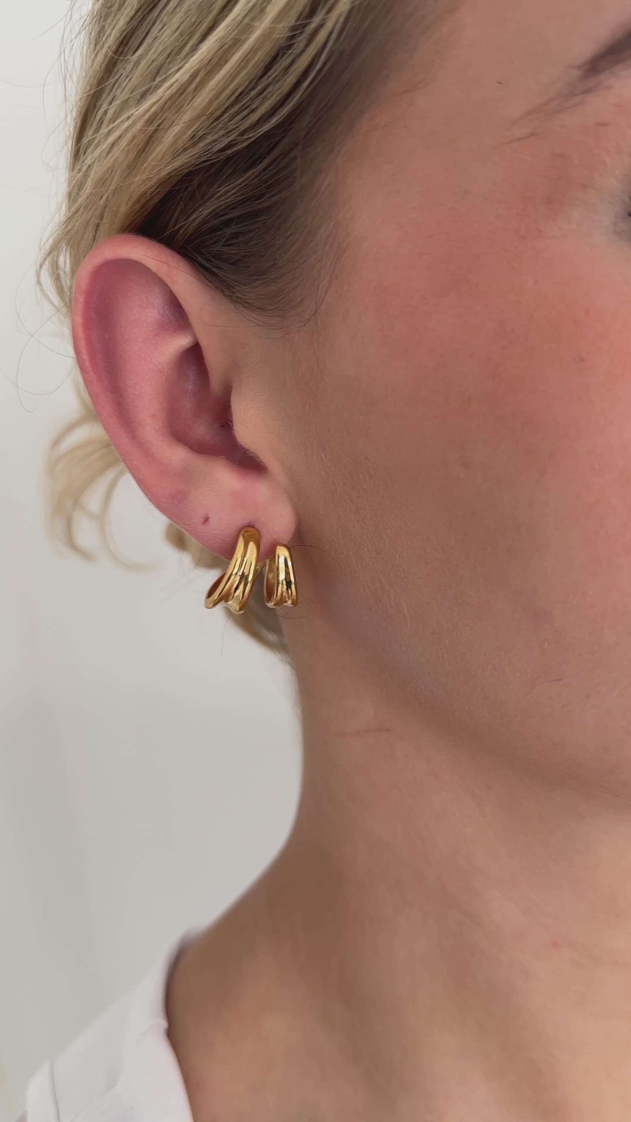 These beautiful double hoop earrings gives you the illusion of having an extra hoop in without the piercing. Double Hoop Earrings that are super light and comfortable to wear.