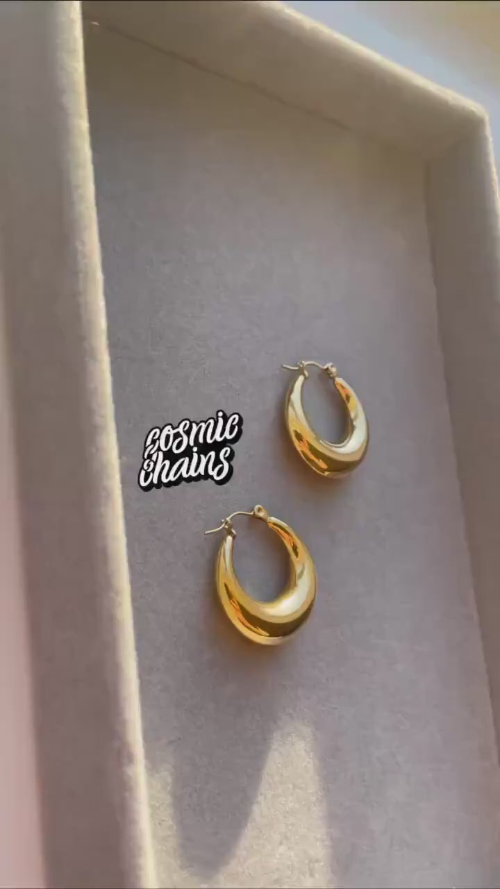 Give your style a playful upgrade with the fabulous Medium Gold Hoop Earrings in Gold. They feature a tapered hoop design. These Medium Gold Hoop Earrings are available in 18k gold plating with a stainless steel base, add a sprinkle of laid-back glam to any outfit. Perfect for jazzing up your everyday look.