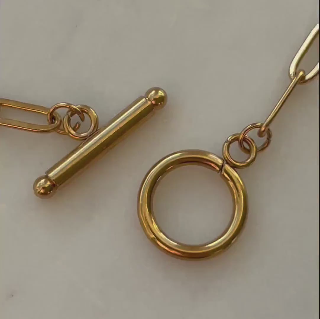 Clasp on chic with our Paperclip Gold Toggle Chain! Effortlessly stylish and easy to switch up, it's the perfect accessory for any occasion. With its convenient toggle clasp, you'll be ready to shine in seconds, no fuss, just fabulous in our Paperclip Gold Toggle Chain